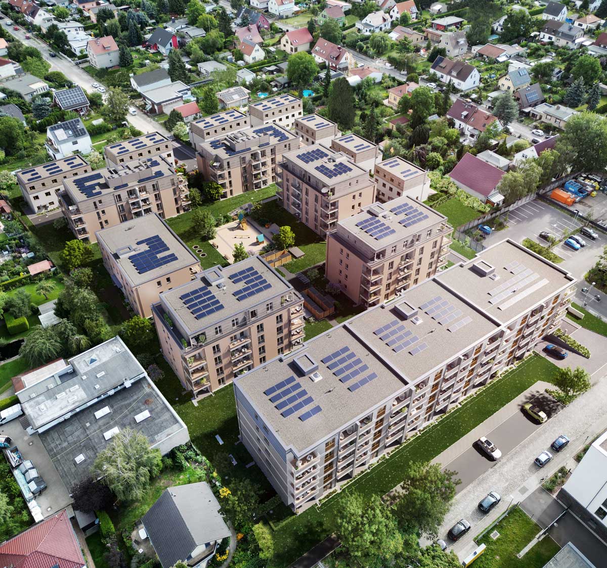 In its new construction and refurbishment projects, Vonovia meticulously ensures optimized energy design and utilizes renewable energies. This is achieved, for example, through adherence to the German Efficiency House standard or the new-build criteria of the Austrian 'klimaaktiv Pakt' initiative.