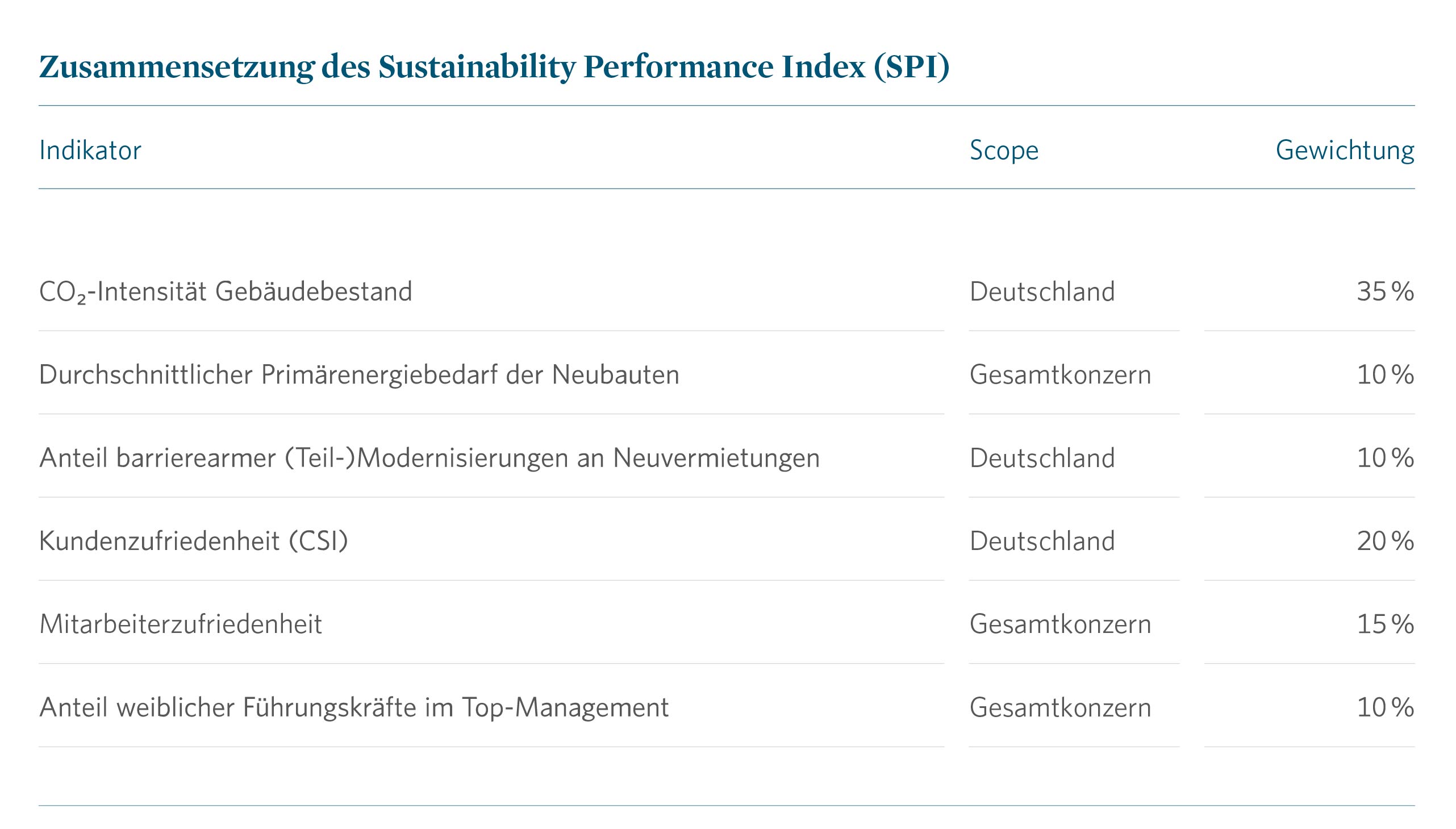 Mit unserem Geschäftsmodell – der Entwicklung und Vermietung von gutem, zeitgerechtem und bezahlbarem Wohnraum – befinden wir uns in hoher Interdependenz zu gesellschaftlichen und ökologischen Veränderungsprozessen. Nachhaltigkeit ist daher Kernbestandteil unserer unternehmerischen Strategie. In den vergangenen Jahren haben wir große Fortschritte dabei erzielt, Nachhaltigkeit in den Geschäftsprozessen des Unternehmens zu verankern. Mit der Einführung der nichtfinanziellen Steuerungskennzahl SPI im Jahr 2021 ist die Strategie mit klaren, vergütungsrelevanten Zielen für den Vorstand und das Top-Management (erste Ebene unterhalb des Vorstands) verknüpft.