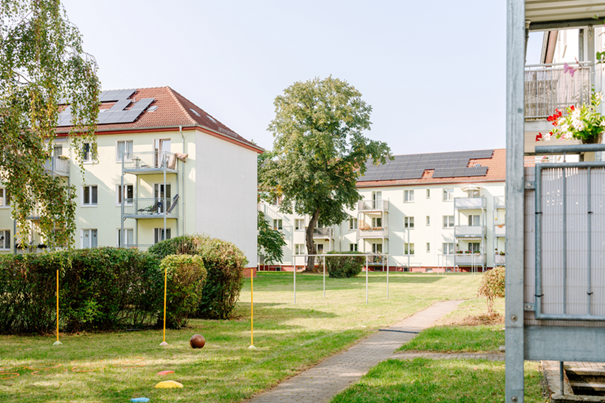Vonovia hat auf den Dächern um die Eggersdorfer Straße in Magdeburg-Fermersleben große Solaranlagen mit einer Gesamtleistung von 587 kWp installiert, 1431 Module wurden dabei verbaut. Bei optimaler Sonneneinstrahlung würde diese Menge den durchschnittlichen Jahresverbrauch von 160-190 Zwei-Personenhaushalten (~3000 kWh/p.a.) abdecken. Die Mieterinnen und Mieter in den 159 Wohnungen des Quartiers haben nun die Möglichkeit, günstigen Gründirektstrom zu beziehen, wenn sie sich dafür entscheiden. „So kommen wir unserem Ziel näher, unsere Häuser bis 2045 möglichst autark, klimaneutral und günstig mit Energie zu versorgen“, sagt Katrin Rockmann, Regionalleitung Vonovia.