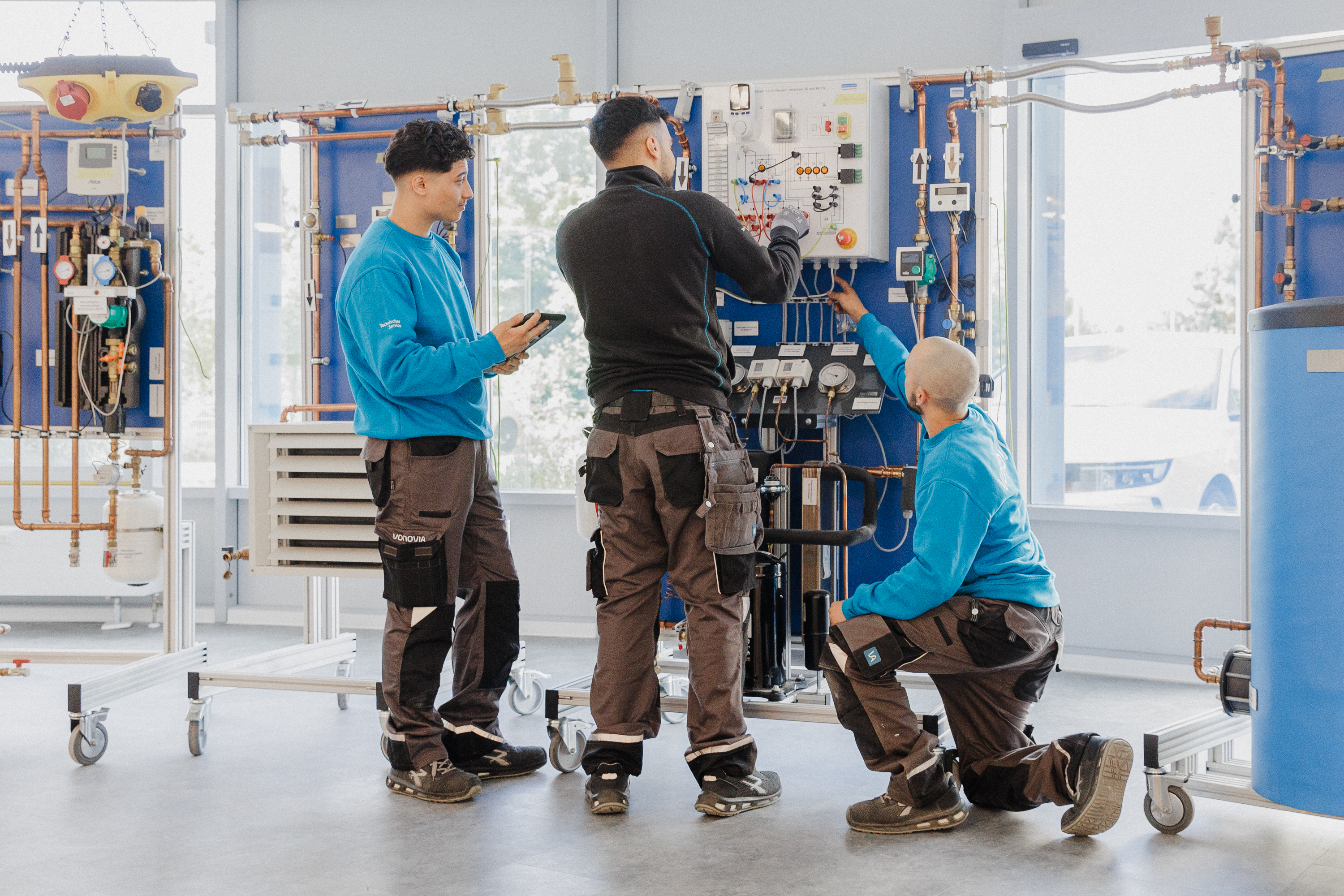 Wie wichtig Vonovia die Qualität der Ausbildung ist, unterstreicht das Wohnungsunternehmen seit Mai dieses Jahres, mit dem jüngst in Berlin eröffneten Aus- und Weiterbildungszentrum. In der modernen Handwerksakademie werden bis zu 220 Auszubildende pro Jahr auf rund 3.000 Quadratmetern in digital ausgestatteten Lehrwerkstätten und Praxisräumen ausgebildet. Der Schwerpunkt liegt auf Energie- und Gebäudetechniken sowie Zukunftstechnologien wie Wärmepumpen und Photovoltaik. Das Zentrum unterstützt die Unternehmensstrategie für die Energiewende und die Dekarbonisierung des Gebäudebestands.