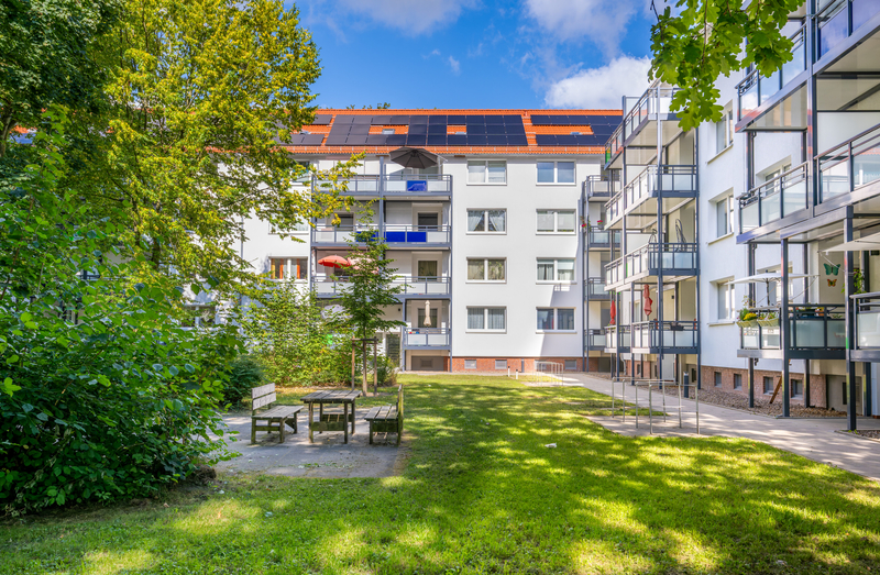 Das modernisierte Quartier Hünertshagen bietet ein gepflegtes und einladendes Umfeld für alle Generationen.